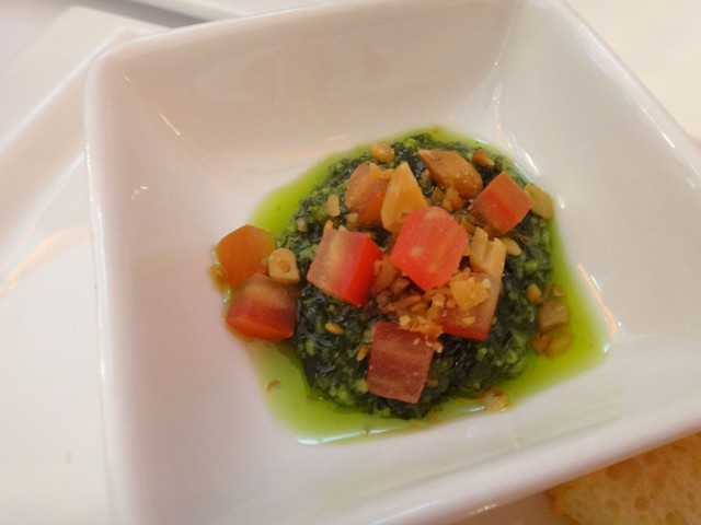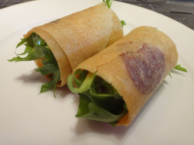 法式春捲皮搭配帝王蟹肉+羅勒葉+蕃茄....