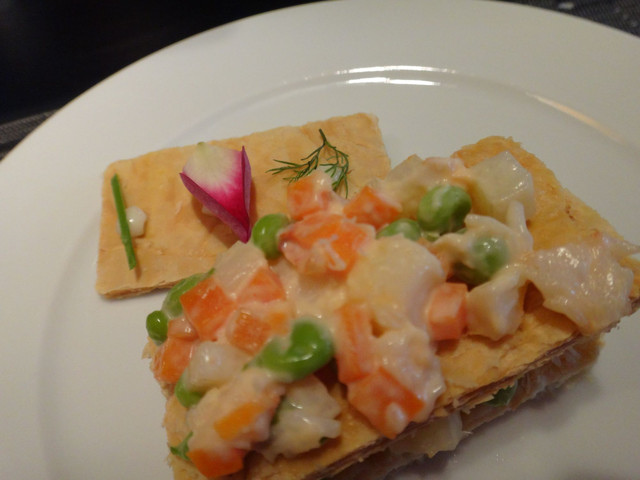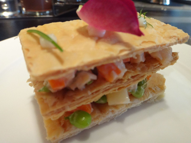 Lobster Millefeuille自製派皮,中間夾心拌入甜豆仁、馬鈴薯、紅羅蔔
