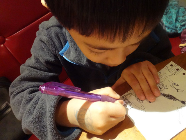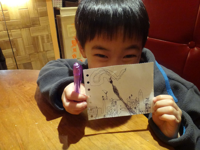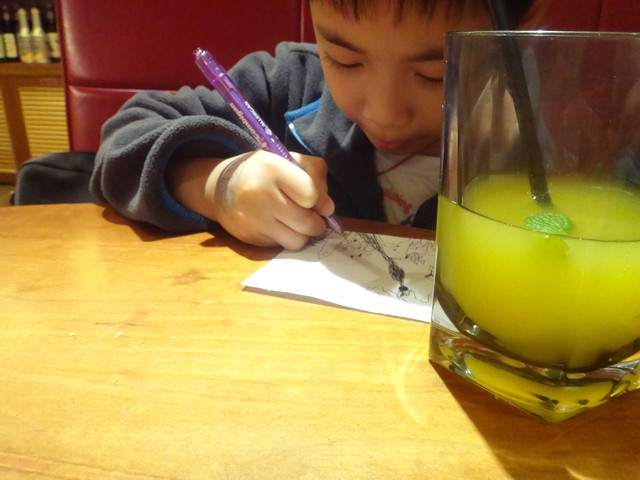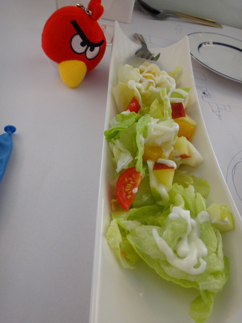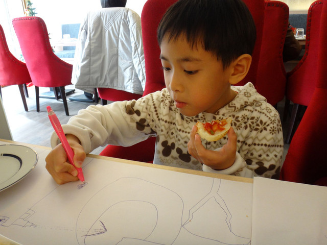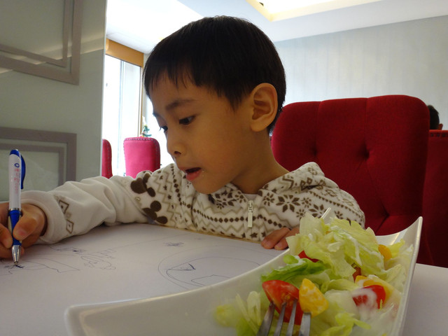 餐桌紙太大,又不專心吃,畫Angry Bird....